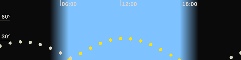 Höchster Stand (Kulmination)02:15 Uhr (h=27.5°)