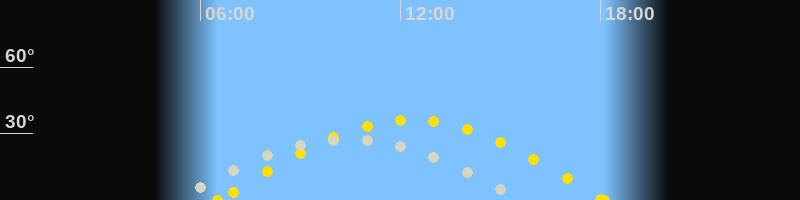Höchster Sonnenstand (Kulmination)12:19 Uhr (h = 36.2°)