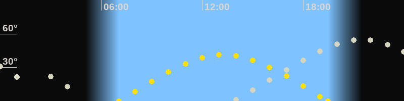 Höchster Sonnenstand (Kulmination)13:16 Uhr (h = 41.3°)