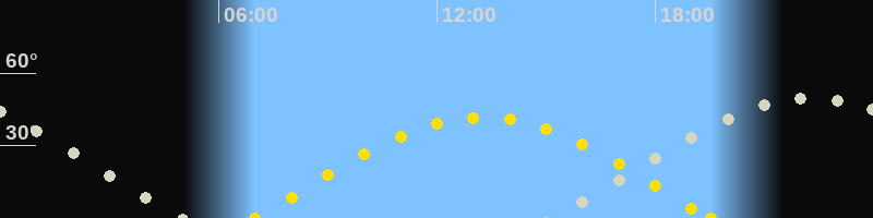 Höchster Sonnenstand (Kulmination)13:15 Uhr (h = 41.7°)
