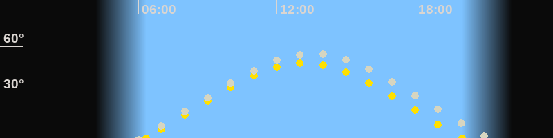 Sonnenaufgang06:19 Uhr im Osten (αAz = 74.2°)