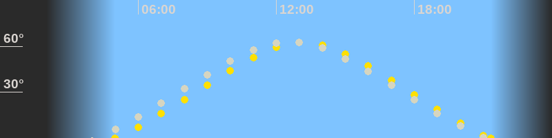 | Höchster Sonnenstand (Kulmination) | 13:10 Uhr (h = 62.4°) |