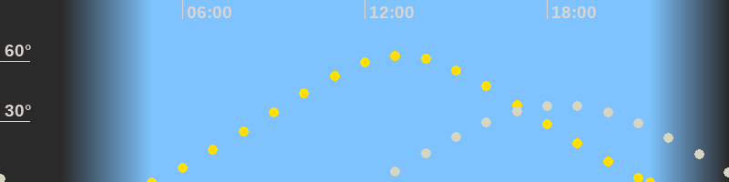 | Höchster Sonnenstand (Kulmination) | 13:11 Uhr (h = 62.7°) |