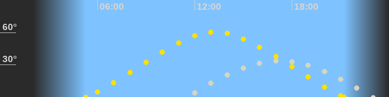 | Höchster Sonnenstand (Kulmination) | 13:16 Uhr (h = 60.5°) |