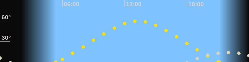 | Höchster Sonnenstand (Kulmination) | 13:16 Uhr (h = 59.6°) |