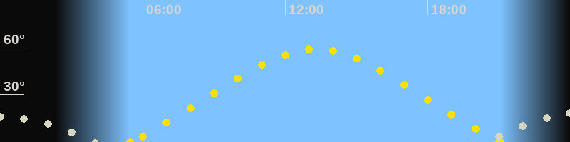| Höchster Sonnenstand (Kulmination) | 13:16 Uhr (h = 59°) |