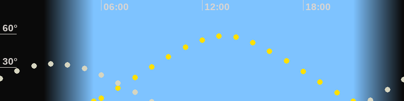 | Höchster Sonnenstand (Kulmination) | 13:16 Uhr (h = 58.1°) |