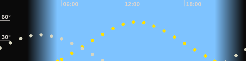 | Höchster Sonnenstand (Kulmination) | 13:16 Uhr (h = 57.9°) |