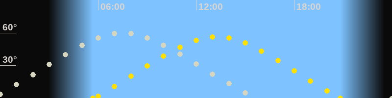 | Höchster Stand (Kulmination) | 07:25 Uhr (h=60°) |