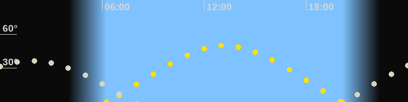| Sonnenaufgang | 06:15 Uhr im Osten (αAz = 72.3°) |