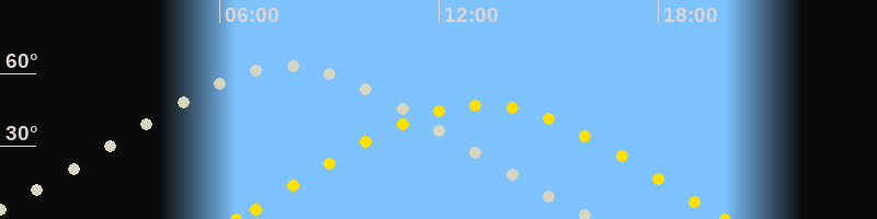| Sonnenaufgang | 06:27 Uhr im Osten (αAz = 76.9°) |