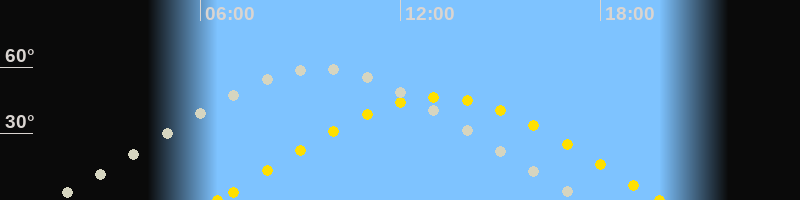 | Höchster Stand (Kulmination) | 09:33 Uhr (h=59.6°) |