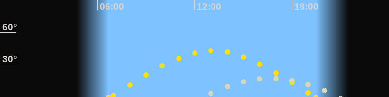 | Sonnenaufgang | 06:42 Uhr im Osten (αAz = 82.9°) |