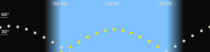 | Höchster Sonnenstand (Kulmination) | 13:02 Uhr (h = 39°) |