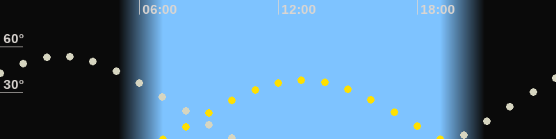Höchster Sonnenstand (Kulmination)13:01 Uhr (h = 38.2°)