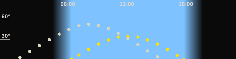 Höchster Stand (Kulmination)09:04 Uhr (h=53.5°)