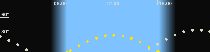 | Höchster Sonnenstand (Kulmination) | 12:55 Uhr (h = 29.4°) |