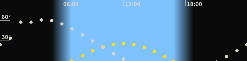| Höchster Sonnenstand (Kulmination) | 11:54 Uhr (h = 26°) |
