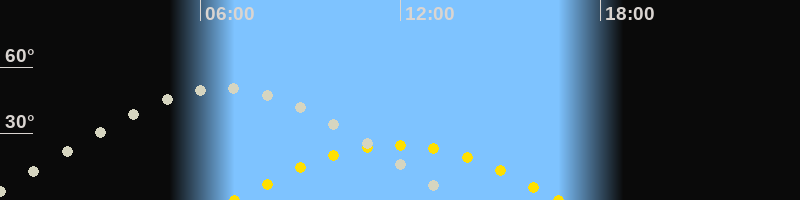 | Höchster Sonnenstand (Kulmination) | 11:53 Uhr (h = 25°) |