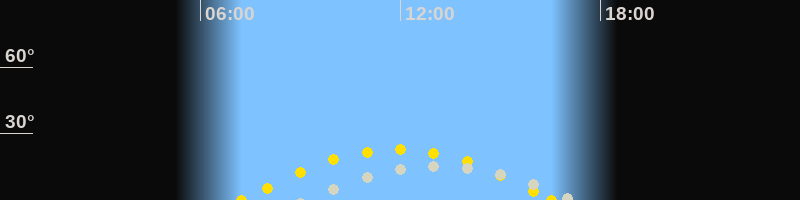 | Höchster Sonnenstand (Kulmination) | 11:53 Uhr (h = 22.8°) |
