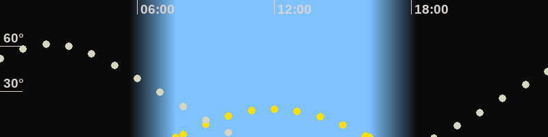 | Höchster Sonnenstand (Kulmination) | 11:57 Uhr (h = 18.6°) |