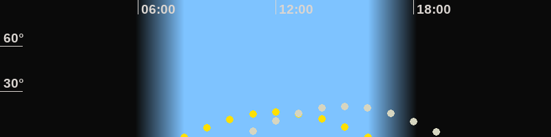 | Höchster Sonnenstand (Kulmination) | 12:02 Uhr (h = 16.5°) |