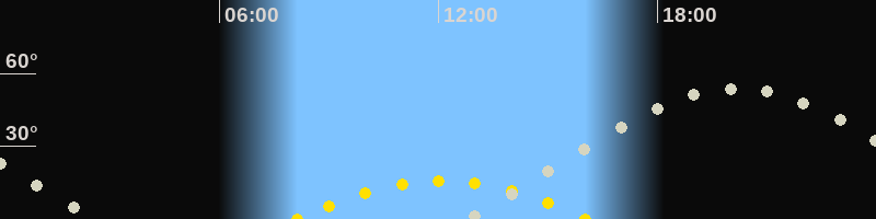 | Höchster Sonnenstand (Kulmination) | 12:05 Uhr (h = 16°) |