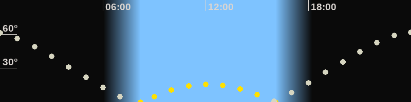 | Höchster Sonnenstand (Kulmination) | 12:07 Uhr (h = 15.8°) |
