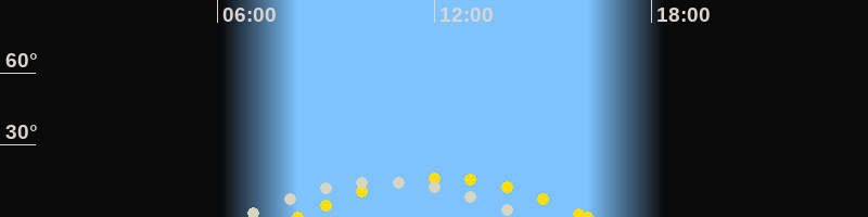 | Höchster Sonnenstand (Kulmination) | 12:14 Uhr (h = 16.4°) |