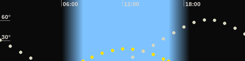 | Höchster Sonnenstand (Kulmination) | 12:19 Uhr (h = 18°) |
