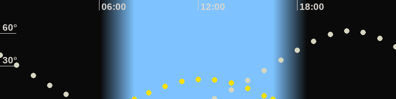 Höchster Sonnenstand (Kulmination)12:19 Uhr (h = 18.2°)