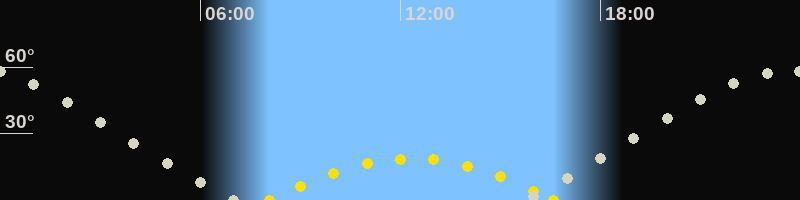 | Höchster Sonnenstand (Kulmination) | 12:20 Uhr (h = 18.8°) |