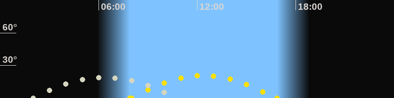 | Höchster Stand (Kulmination) | 06:23 Uhr (h=19.2°) |