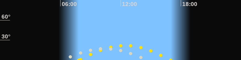 | Höchster Sonnenstand (Kulmination) | 12:23 Uhr (h = 22°) |