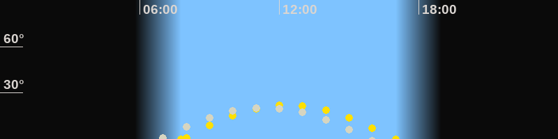 | Höchster Sonnenstand (Kulmination) | 12:23 Uhr (h = 22.3°) |
