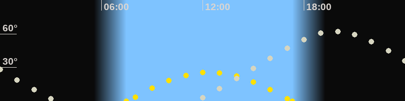 | Höchster Sonnenstand (Kulmination) | 12:24 Uhr (h = 25.7°) |