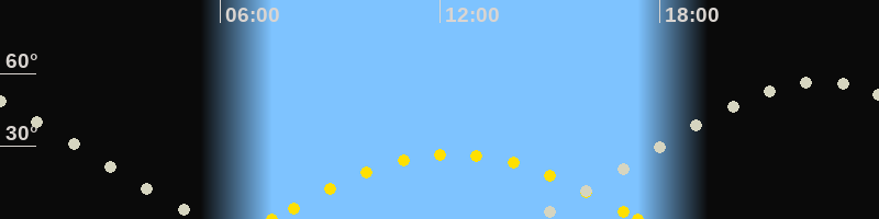 | Höchster Sonnenstand (Kulmination) | 12:24 Uhr (h = 26.7°) |