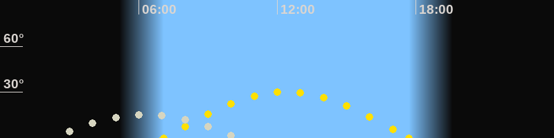 | Höchster Sonnenstand (Kulmination) | 12:23 Uhr (h = 30.3°) |