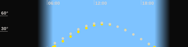 | Sonnenaufgang | 06:45 Uhr im Osten (αAz = 81.5°) |