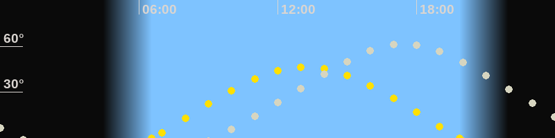 | Sonnenaufgang | 06:32 Uhr im Osten (αAz = 77.9°) |