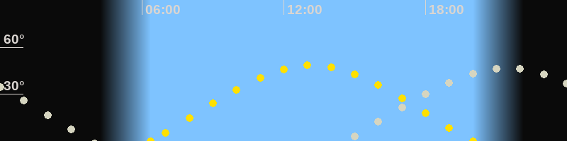 | Sonnenaufgang | 06:22 Uhr im Osten (αAz = 74.9°) |