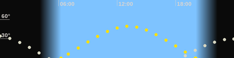 Höchster Sonnenstand (Kulmination)13:10 Uhr (h = 49.5°)