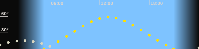 | Höchster Sonnenstand (Kulmination) | 13:06 Uhr (h = 59.1°) |