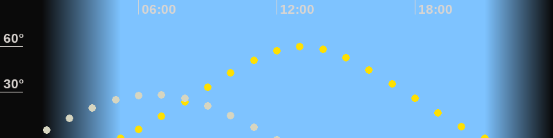 Höchster Sonnenstand (Kulmination)13:07 Uhr (h = 59.9°)