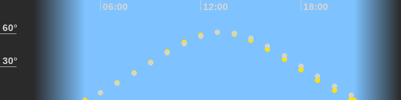 | Höchster Sonnenstand (Kulmination) | 13:08 Uhr (h = 61.4°) |