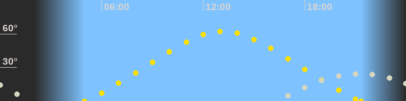 | Höchster Sonnenstand (Kulmination) | 13:09 Uhr (h = 62.4°) |