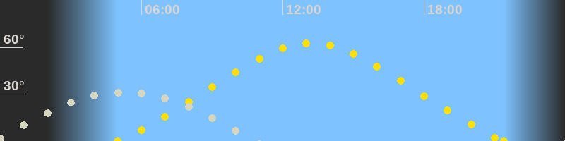 | Höchster Sonnenstand (Kulmination) | 13:11 Uhr (h = 62.7°) |