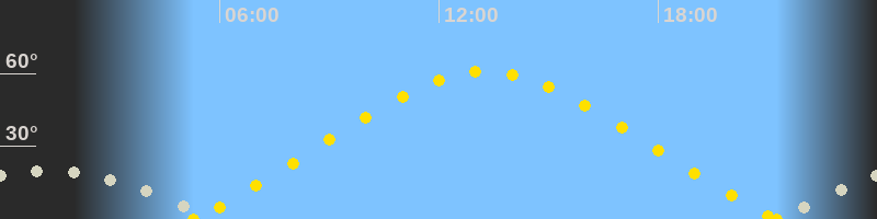 | Höchster Sonnenstand (Kulmination) | 13:16 Uhr (h = 60.7°) |