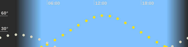 | Höchster Sonnenstand (Kulmination) | 13:16 Uhr (h = 60.6°) |