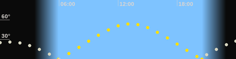 | Höchster Sonnenstand (Kulmination) | 13:15 Uhr (h = 53.8°) |